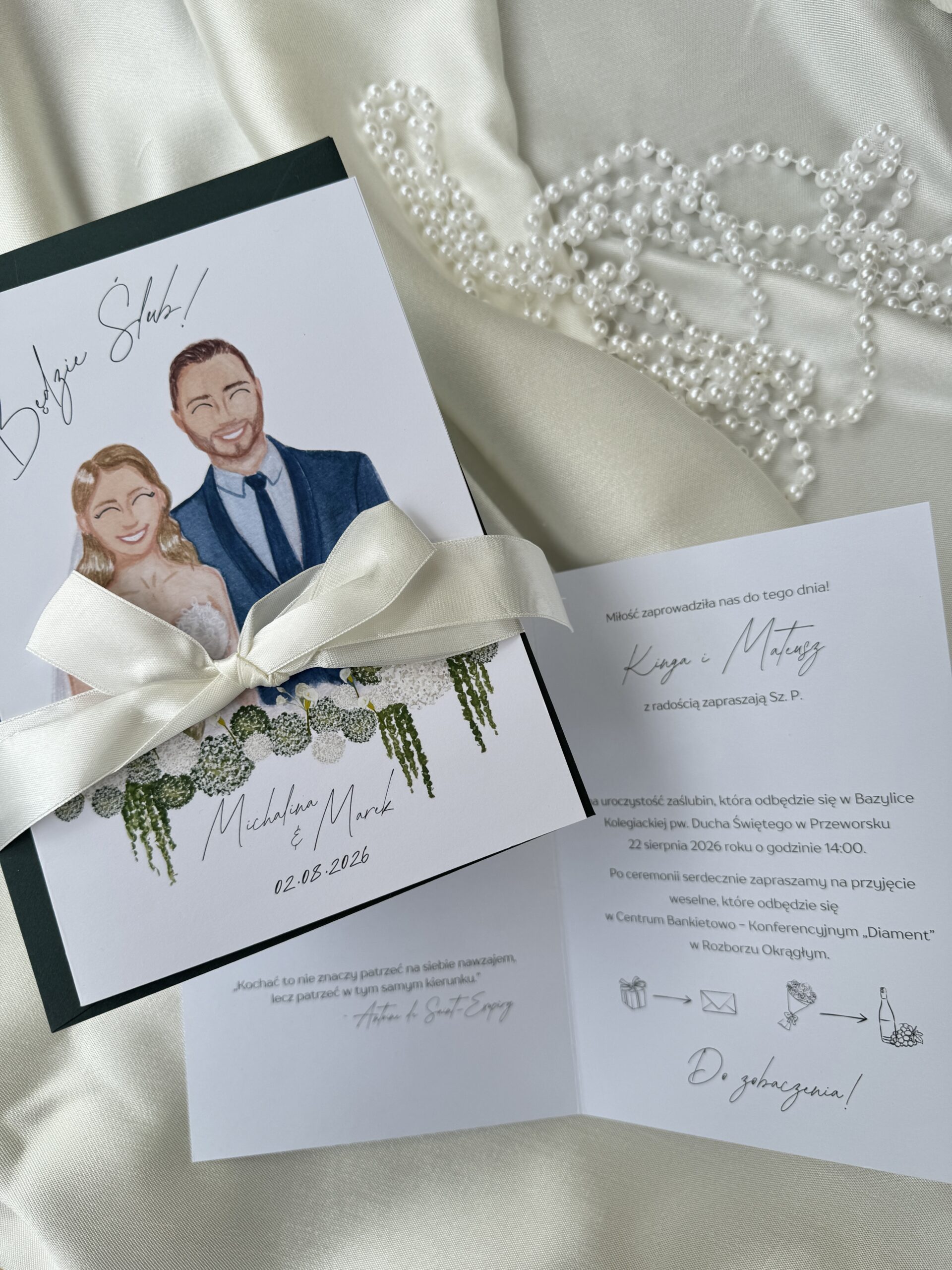 Kartkę można spersonalizować dodając napisy, imiona, kwiaty lub dowolny motyw. Wszytko spersonalizowane specjalnie pod Ciebie.