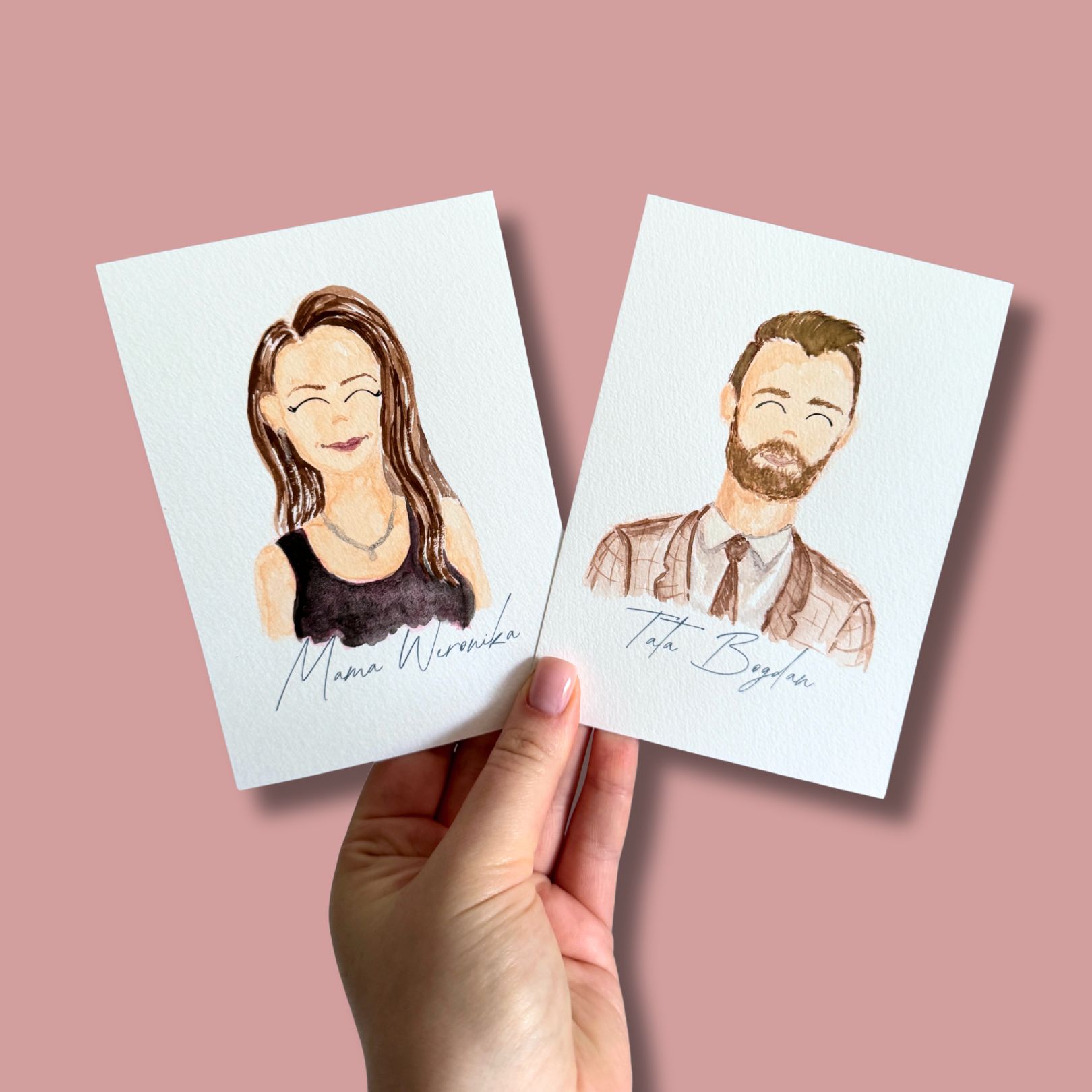 Mały portrecik ręcznie malowany akwarelami na podstawie przesłanego zdjęcia. Pomysł na prezent dla bliskiej osoby.
