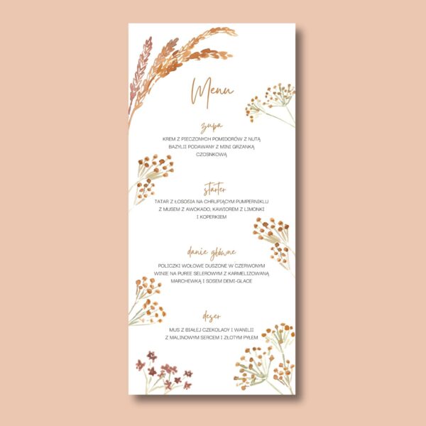 W skład wchodzi: jeden plik menu PDF o rozmiarze 9 cm x 21 cm.